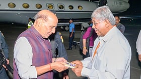 Sweet Welcome! Chandrakant Patil Offers White Chocolate To Rajnath Singh At Pune Airport - PHOTOS