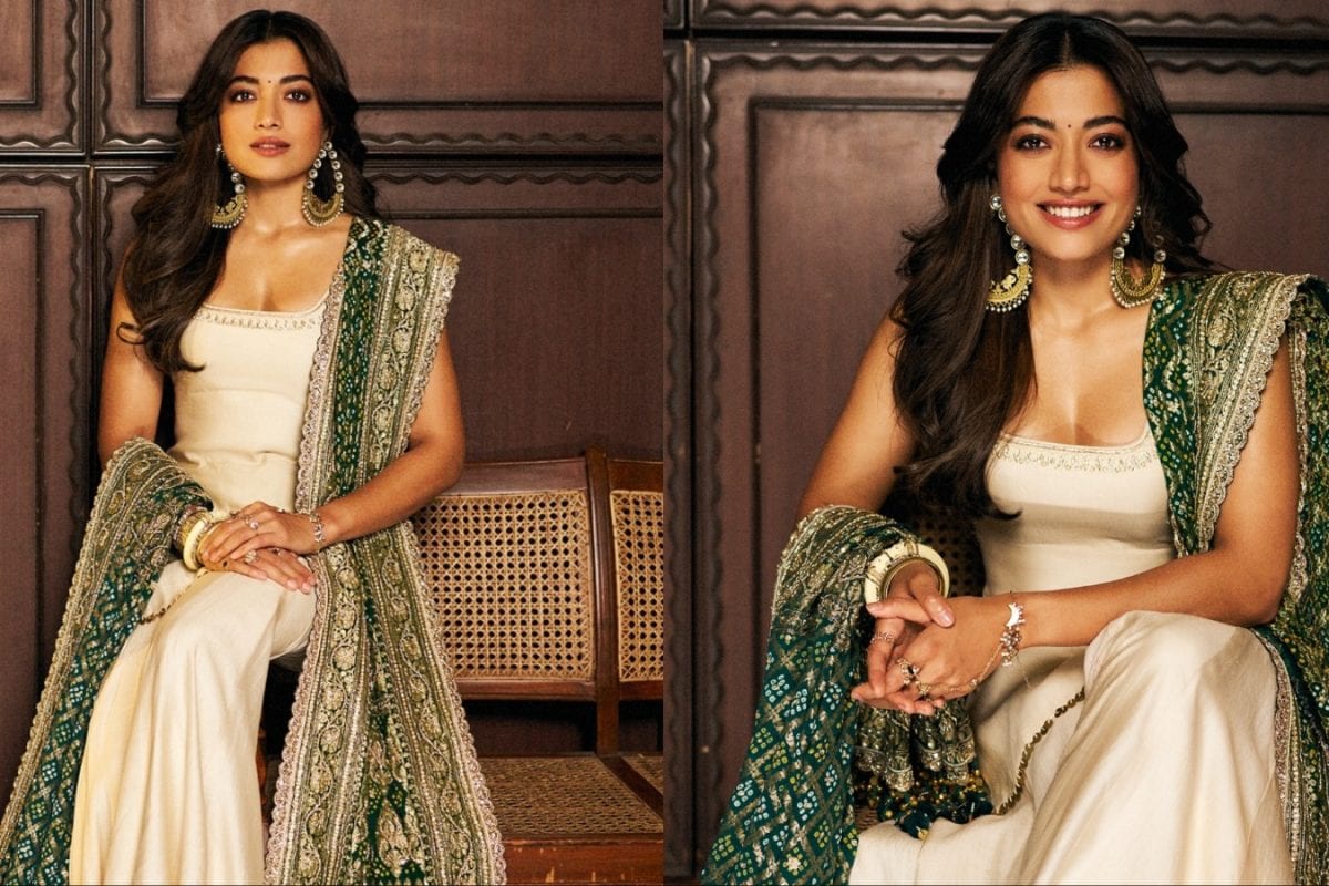 Rashmika Mandanna Stuns In Ivory Sharara And Green Gharchola Dupatta For Diwali