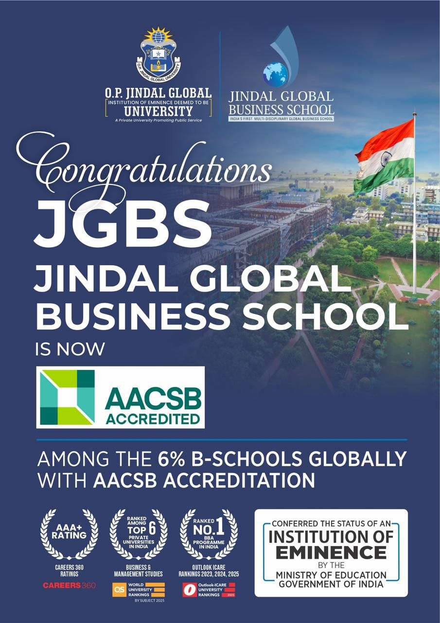 Jindal Global Business School Accorded Prestigious AACSB International Accreditation; Joins Elite 6% Business Schools Worldwide