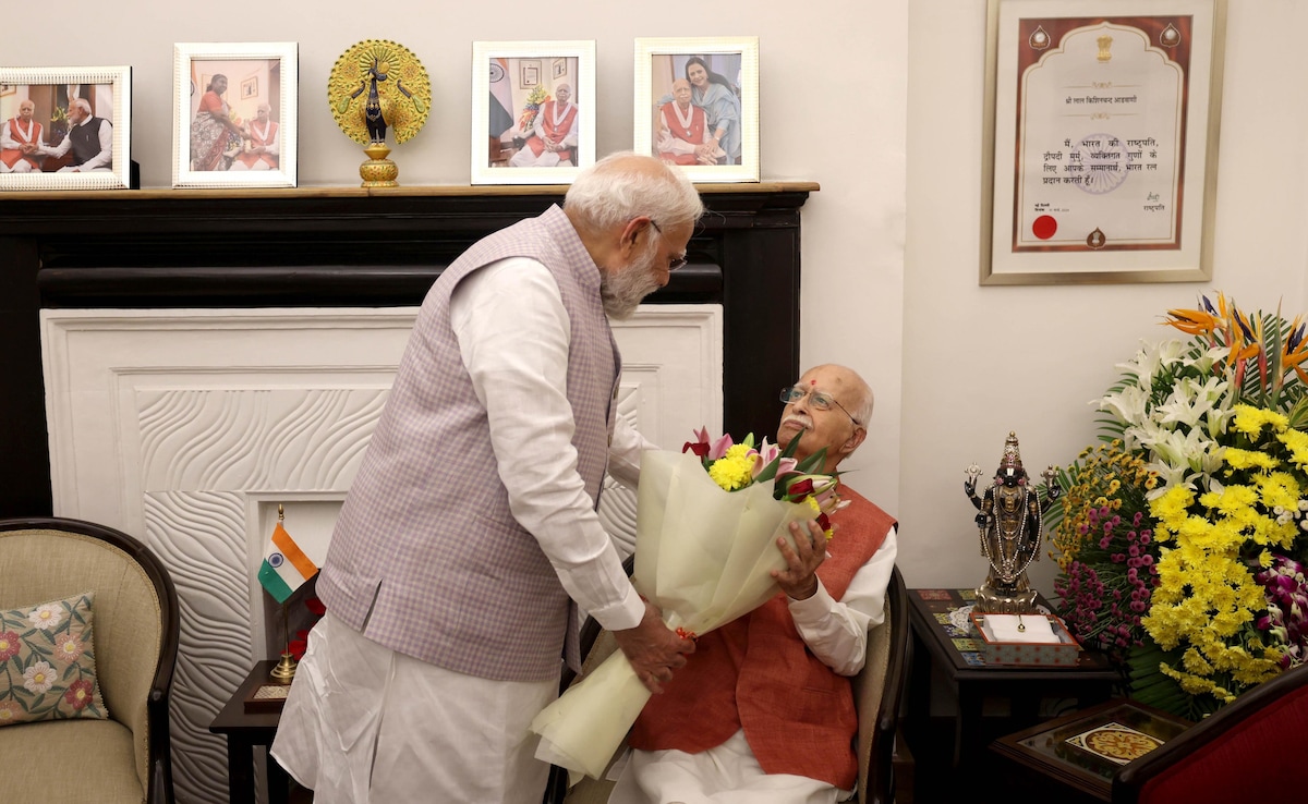 लालकृष्‍ण आडवाणी के घर पहुंचकर पीएम मोदी ने दी जन्‍मदिन की बधाई