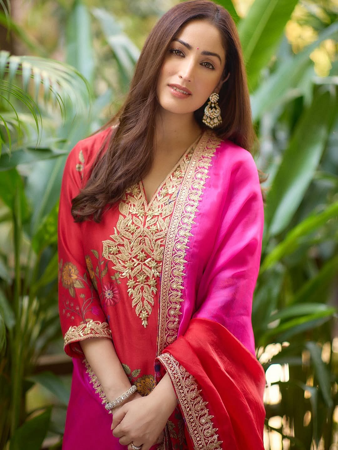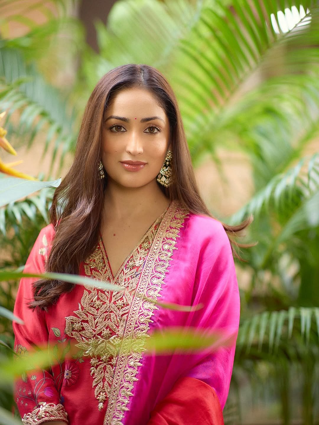 Yami’s beauty styling stays consistent- dewy skin, nude lips, and softly styled hair that highlight the rich colours and craftsmanship of each outfit