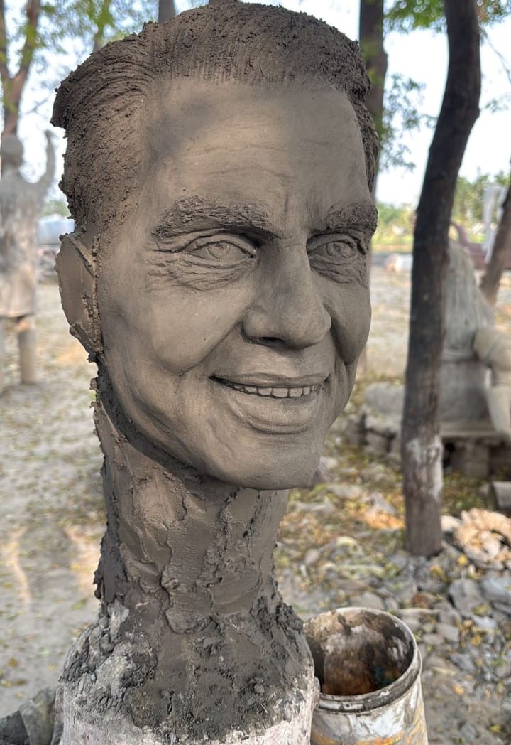 Moga artist Iqbal Singh Gill crafts statue of Bollywood legend Dharmendra