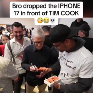 From excitement to embarrassment! Fan drops new iPhone 17 Pro in front of Tim Cook